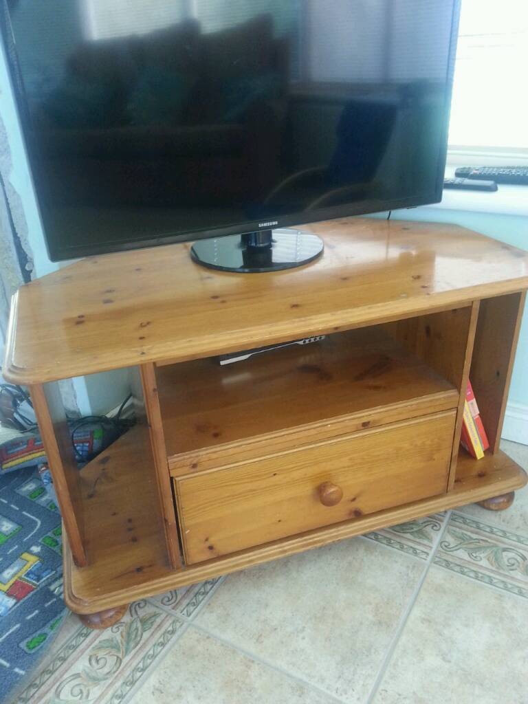 pine tv corner unit and coffee table | in Ballinderry ... from i.ebayimg.com There's no need to skip out on style with practical furniture, as this handsome table unit combines both aesthetics and utility. Having tv unit and coffee table sets is the good and clever choice to improve the appearance and quality. Goldfan rectangular coffee table wood style side end table tv unit with glass storage shelf for living room office furniture,brown,100 * 45 * 45cm 4.5 out of 5 stars 243 £60.00 £ 60. 45cm high x 70cm wide x 70cm deep so that it offers more than enough space for your objects. Table view photo 1 of 20. The unit was packaged very well, was sitting on a particle board frame inside the box. 5.0 out of 5 stars 5. Entertainment stand stores your collection of movies, video games and more with cabinet doors on either side.